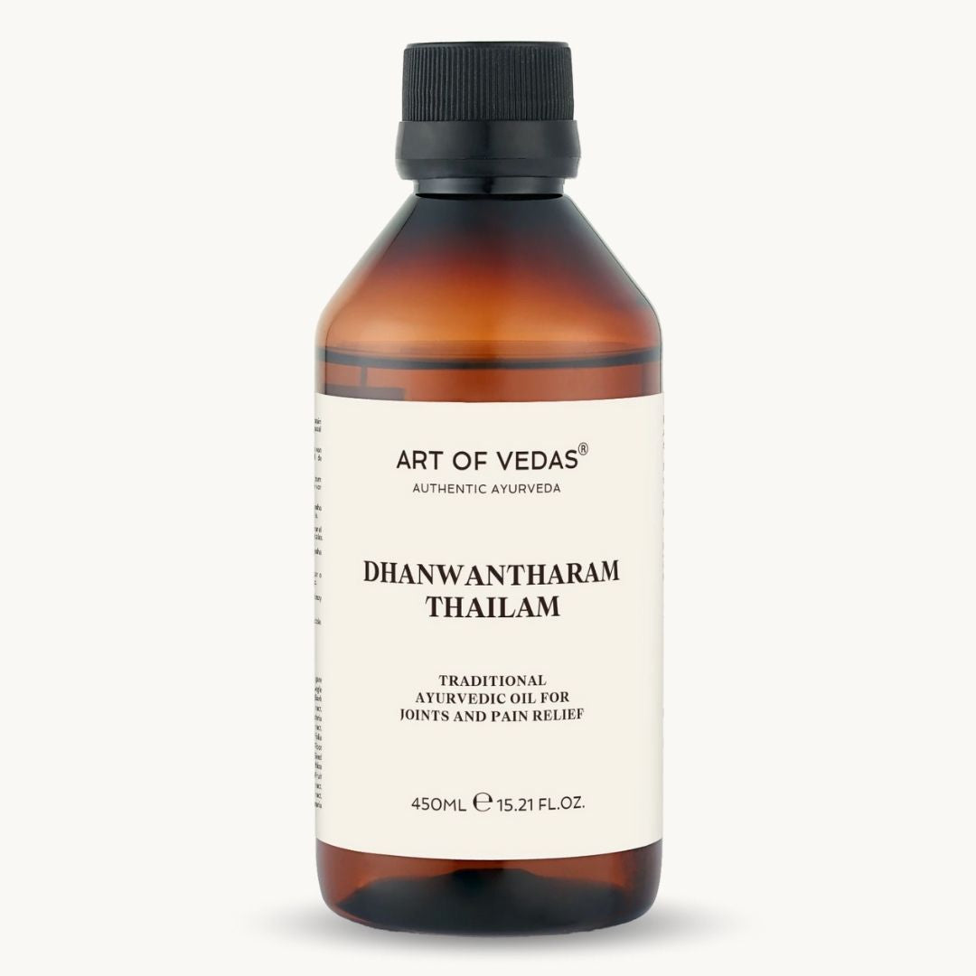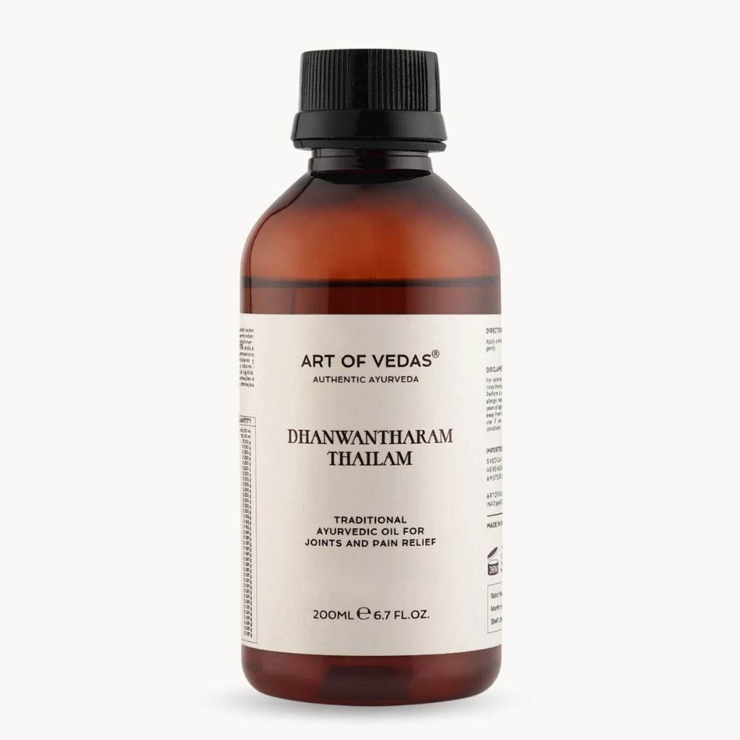 Dhanwantharam Thailam är expertmässigt formulerad av ayurvediska specialister för dess anmärkningsvärda effektivitet i att förbättra ledrörlighet och lindra smärta. Denna traditionella olja blandar kraftfulla örter kända för sina antiinflammatoriska och föryngrande egenskaper, vilket gör den idealisk för dem som lider av artrit, muskelspänningar eller återhämtar sig från skador. Regelbunden massage med Dhanwantharam Thailam främjar cirkulationen, stödjer kroppens naturliga läkningsprocesser och stärker muskuloskeletala systemet, vilket erbjuder en holistisk metod för fysisk välmående och vitalitet. Dess jordande effekter hjälper också till att minska stress och främja mental lugn.