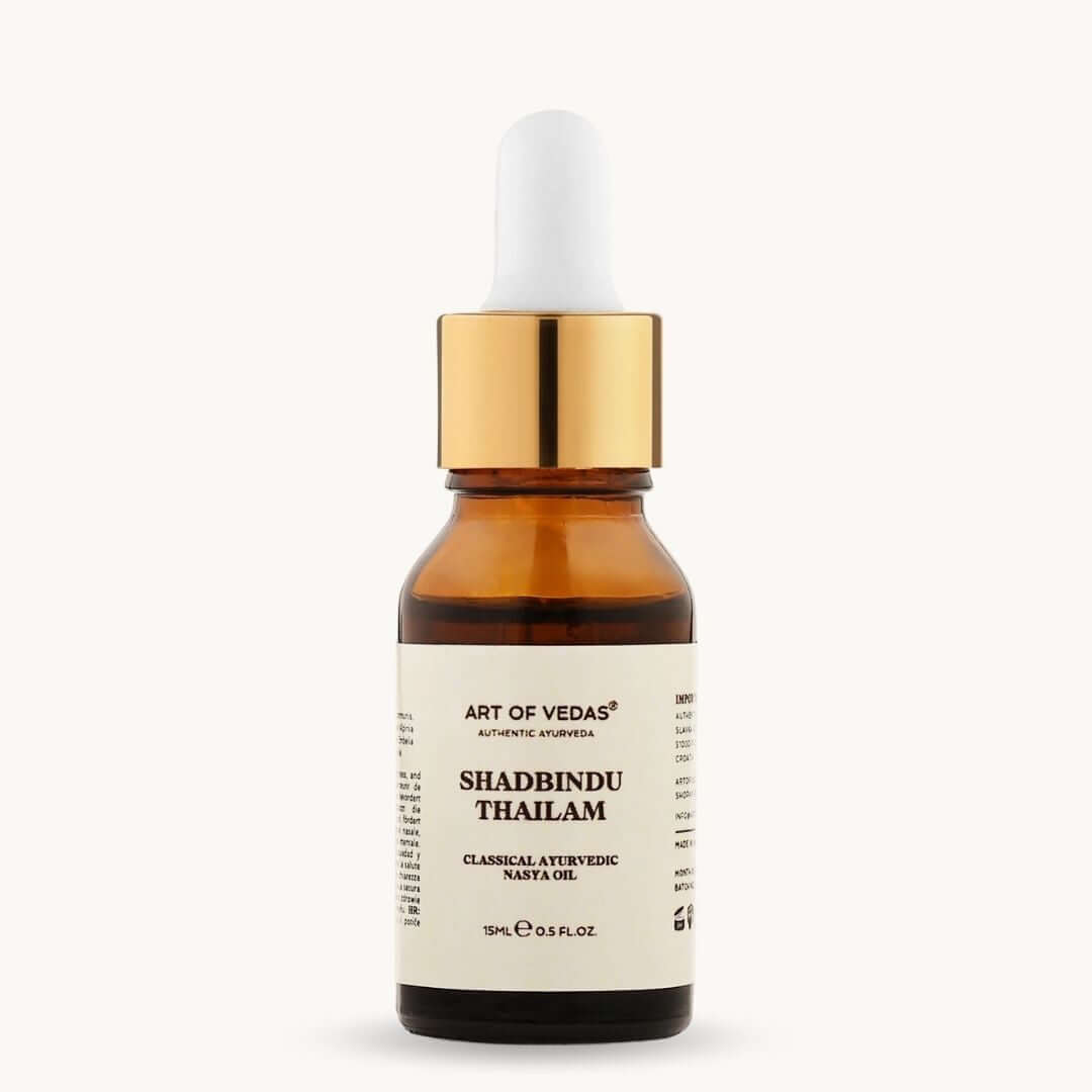 Shadbindu Thailam is specifically formulated for nasal administration (Nasya). Do not apply to skin, ingest directly, or use in eyes or ears.