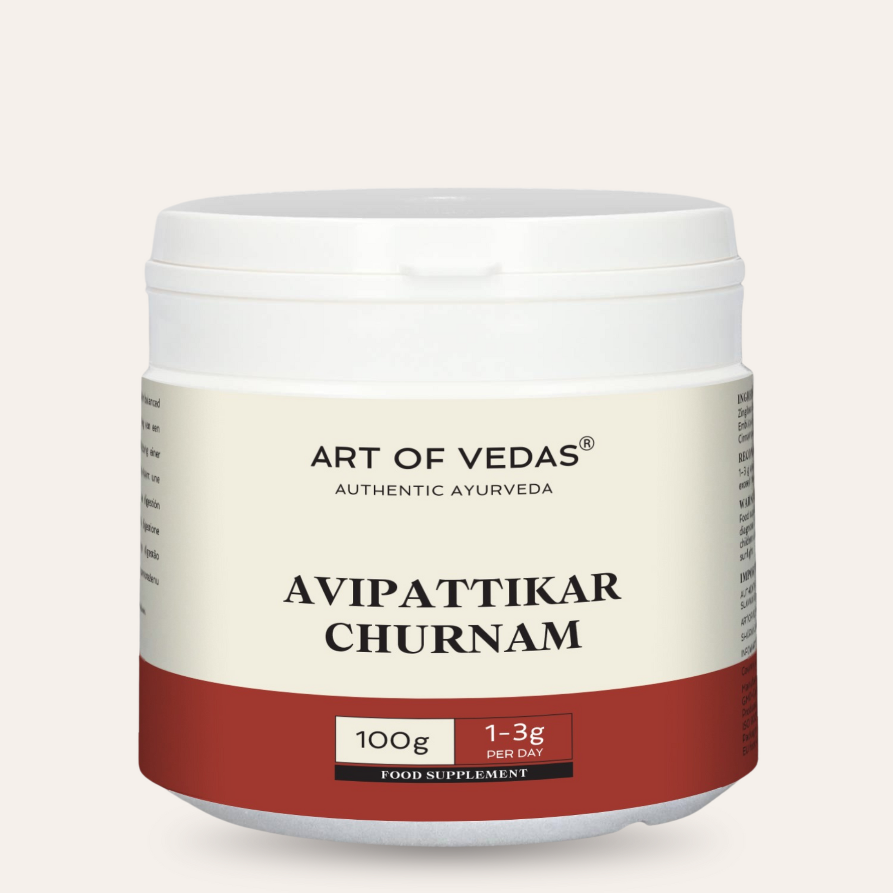 Enhetspris perAvipattikar Choornam är en traditionell ayurvedisk formulering som används för att balansera överskott av Pitta och stödja matsmältningskomfort. Det är en blandning av kylande, karminativa och milt laxerande örter som tillsammans verkar för att minska syrauppbyggnad, lindra brännande känslor och stödja regelbunden eliminering utan irritation.